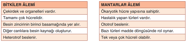 Bir öğretmen, öğrencilerinden bitkiler ve mantarlar âlemlerini tanıtan bilgi kartları hazırlamalarını istemiştir. Bu kapsamda bir öğrencinin hazırladığı bilgi kartı örneği aşağıda verilmiştir: