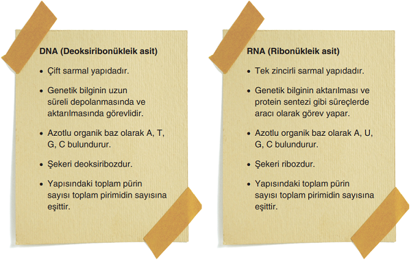 Aşağıda DNA ve RNA moleküllerine ait bilgi kartları verilmiştir.
