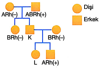 Soyağacında gösterilen K ve L bireylerinin genotipleri aşağıdakilerden hangileri olabilir?