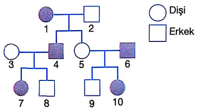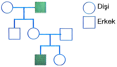 Aşağıdaki soyağacında bazı bireylerin genotipleri gösterilmiştir.