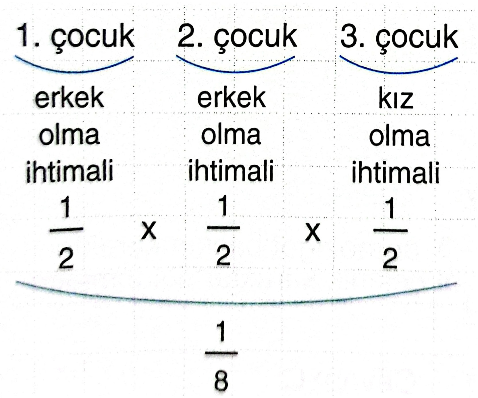 Bir evli çiftin olabilecek üç çocuklarının ilk ikisinin erkek, sonuncusunun kız olma ihtimali nedir? Yazınız.