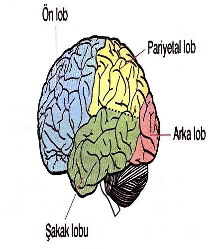 Beynin yapısında bulunan bazı kısımlar şekilde gösterilmiştir.