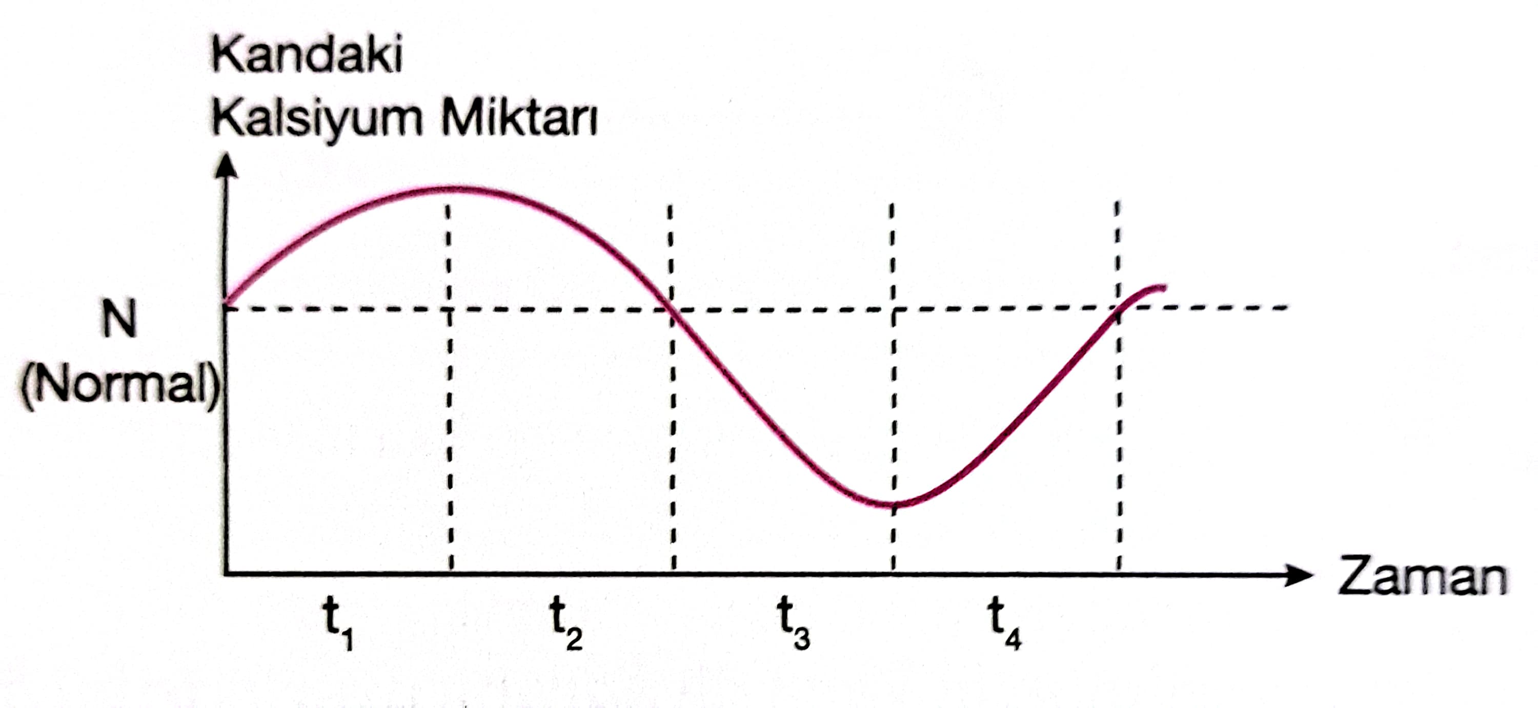 t1: Kandaki kalsiyum miktarının artışı, bağırsaklardan emilimin gerçekleştiğini gösterir.