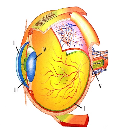 İnsan gözünde bulunan yapılardan bazıları şekilde gösterilmiştir.