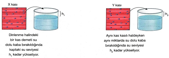 II. Kasılmada ve gevşemede kasın hacmi değişmediğinden h1 = h2'dir.