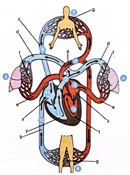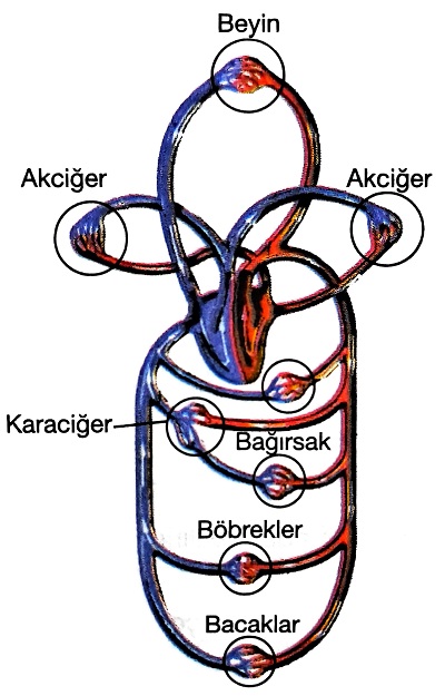 Bir insana ait dolaşım sistemi şekilde özetlenmiştir.