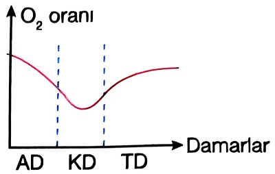 Büyük kan dolaşımında kanın O2 oranındaki değişimi aşağıdaki grafiklerden hangisidir?