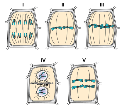 Aşağıda 2n=4 kromozomlu bir bitki hücresinin bazı bölünme evreleri şematize edilmiştir.