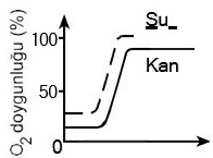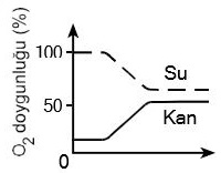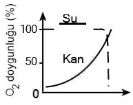 Balıkların solungacında kılcal damarlardaki kan akışı ile su akış yönü birbirine terstir. Bu iki ortam arasın- daki oksijen difüzyonu Şekil 1’de şematize edilmiştir. Difüzyon sonunda kanın oksijen doygunluğunda (%) meydana gelen değişimin grafiği de altında verilmiştir.