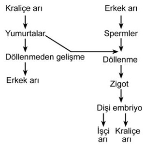 Aşağıdaki şekilde, bal arılarında üreme şematize edilmiştir.
