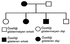 Aşağıdaki soyağacında bir özelliğin bir ailedeki kalıtımı verilmiştir.