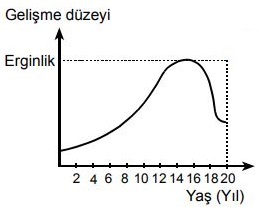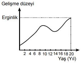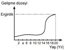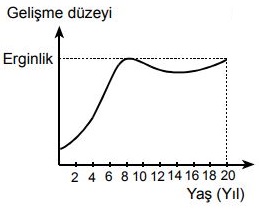 Buna göre, üreme sisteminin doğumdan sonraki normal gelişimini gösteren eğri aşağıdakilerden hangisi olabilir?