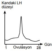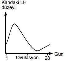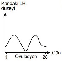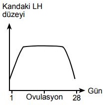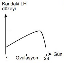 İnsanda dişi bireyde, normal bir menstrual döngü sırasında, kandaki LH hormonunun miktarındaki değişimi, aşağıdaki grafiklerden hangisi gösterir?