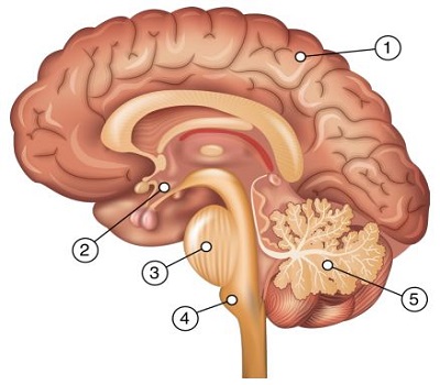 İnsana ait beynin bölümleri aşağıdaki şekilde numaralandırılarak gösterilmiştir.