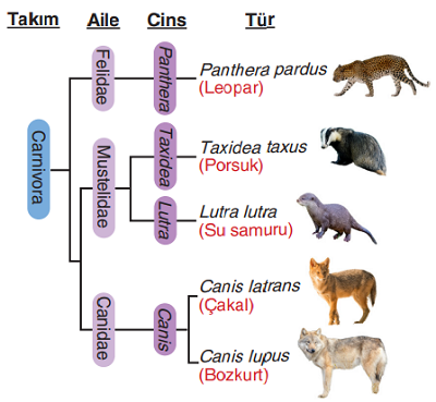 Memeliler sınıfındaki canlı türlerinin yer aldığı sınıflandırma basamaklarının bir kısmı aşağıda şematize edilmiştir.
