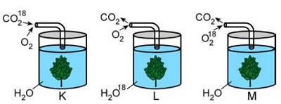 Aydınlık ortamda özdeş su bitkileri kullanılarak hazırlanan aşağıdaki K, L ve M deney düzeneklerinde, ağızları kapalı olan beherlere gaz giriş çıkışı sadece yerleştirilen boru yardımıyla sağlanmaktadır.