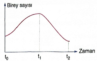 Aşağıdaki grafikte bir popülasyonun zamana bağlı birey sayısı verilmiştir.