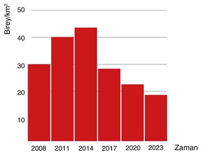 Grafikteki verilere göre rüzgâr santralinin faaliyete geçmesiyle Kızılgerdan popülasyonunun yoğunluğunda meydana gelen değişimin temel nedeni aşağıdakilerden hangisi olamaz?