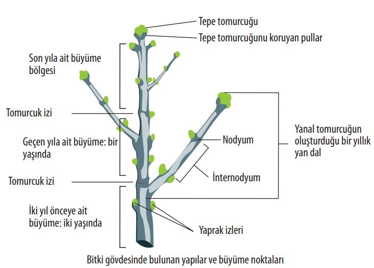 ► Uyuyan tomurcuklar; herhangi bir yaralanma ya da budama durumunda tekrar uyanarak yeni sürgünler oluşturabilirler.