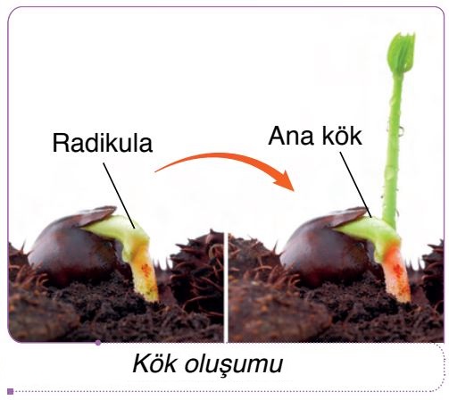 ► Bitki tohumunun uygun koşullarda çimlenmesi ile embriyonik kök oluşur.