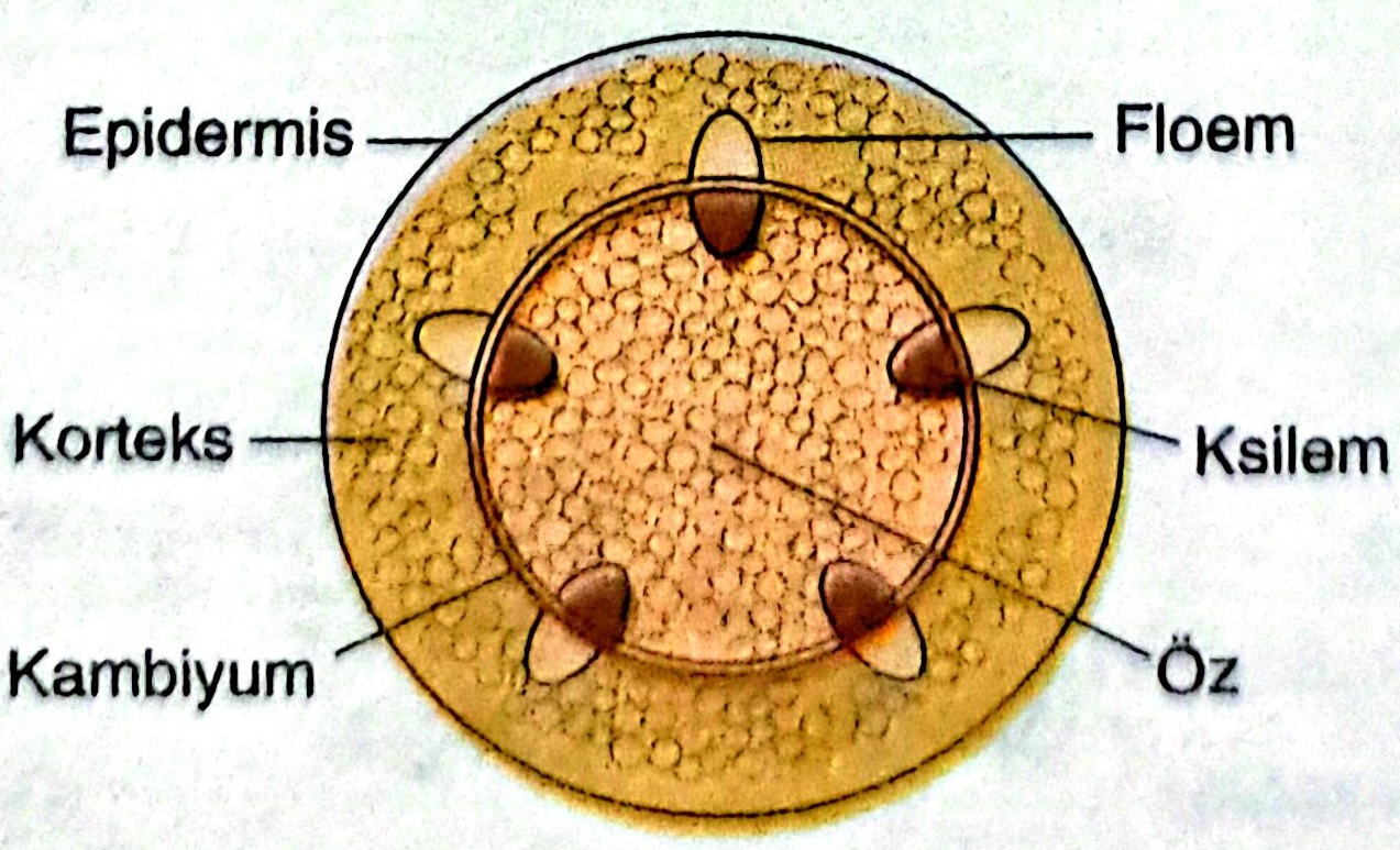 ► Epidermis, Korteks, Endodermis, Merkezi Silindir, Floem ve Ksilem