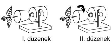 II. Birinci düzenekte, bitkinin gövdesi yukarı yönelir