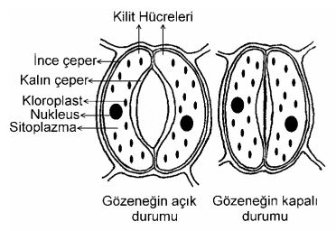 5980Bitkilerin epidermis örtüsünde bulunan stomaların (gözenek) açık ve kapalı şekli aşağıda verilmiştir.