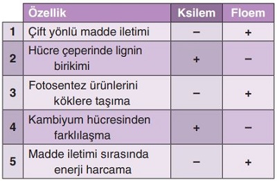 6227Aşağıdaki tabloda bitkilerin iletim dokusunu oluşturan ksilem ve floemle ilgili bazı özellikler verilmiştir.