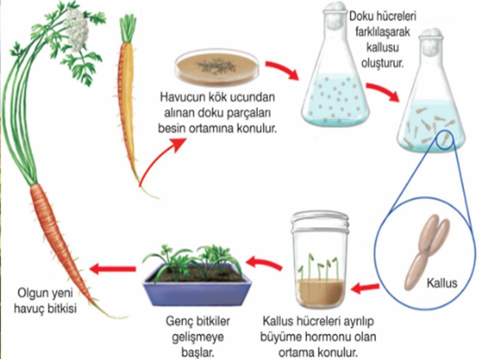 • Ayrıca gelişmiş bitkilerde eşeysiz üremeyi sağlar. (Vejetatif yolla)