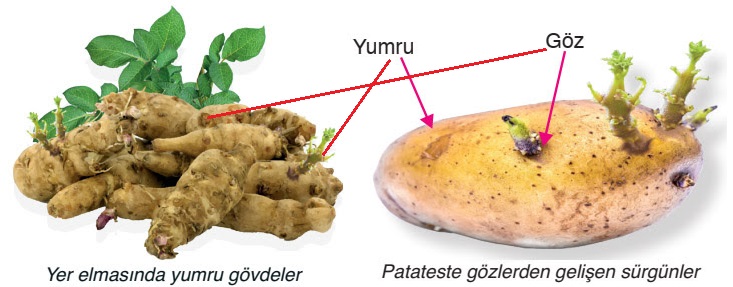 Yukarıda şekilleri verilen bitki örnekleri vejetatif yollarla çoğalabilmektedir. Verilen bu bitki örneklerinin hangi çeşit vejetatif yolla ürediklerini karşılarına yazınız.