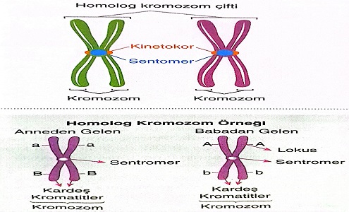 | Homolog kromozomların uzunlukları, sentromer konumları, alel genlerin yerleştiği lokuslar, taşıdıkları gen sayıları ve oluşturdukları bant desenleri aynıdır. |