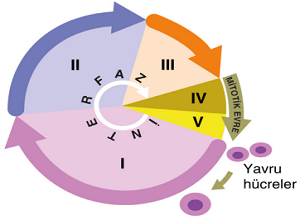 | Metabolik faaliyetler hızlanır | DNA miktarı 2 katına çıkar. Böylece genetik bilginin kopyası çıkarılmış olur. | Çekirdek ve çekirdekçikler belirgin bir şekilde görülür. |