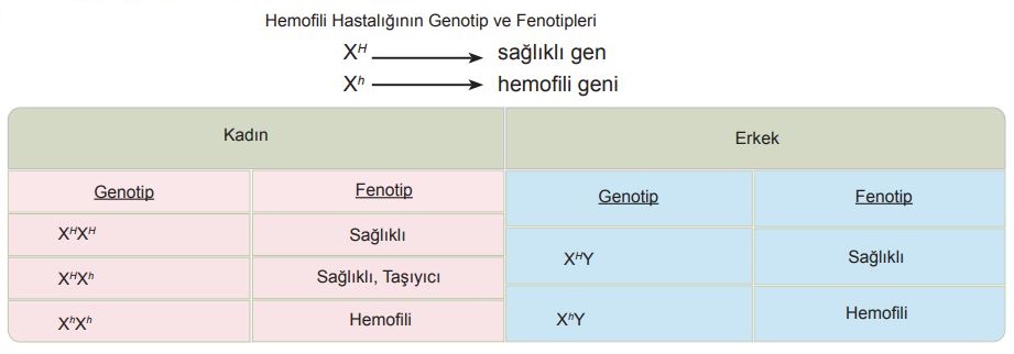 ► Ancak dişilerde iki X kromozomu bulunduğundan iki alelle, erkeklerde bir X kromozomu bulunduğundan bir alelle belirlenir.