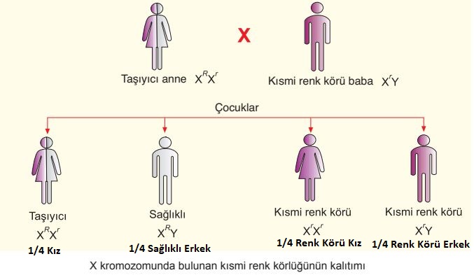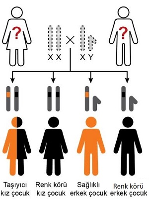 şeklinde olan ebeveynlerin birer erkek çocuklarının renk körü olduğu bilinmektedir.