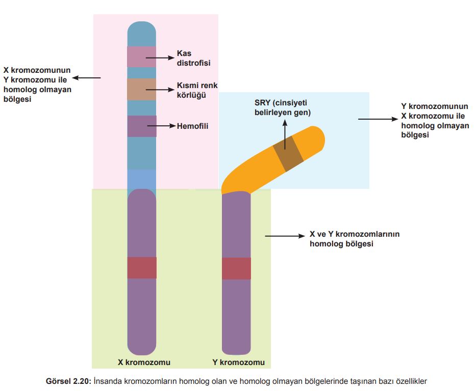 ► X ve Y kromozomlarının birbirlerine karşılık gelmeyen kısımları da bulunur.