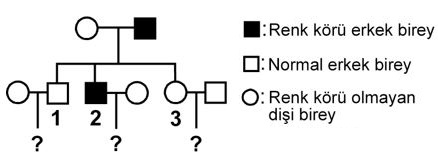 E. 3. bireyin erkek çocuklarının hiçbirinde renk körlüğü görülmez.