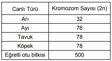 8086Aşağıdaki tabloda bazı canlı türlerinin kromozom sayıları verilmiştir.
