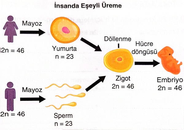 ► Genellikle aynı türden farklı cinsiyetlere sahip iki bireyin üreme hücrelerinin birleşmesiyle olur.