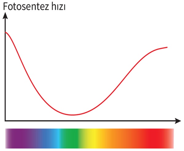a. Fotosentezin en az gerçekleştiği ışık rengi hangisidir? Açıklayınız.