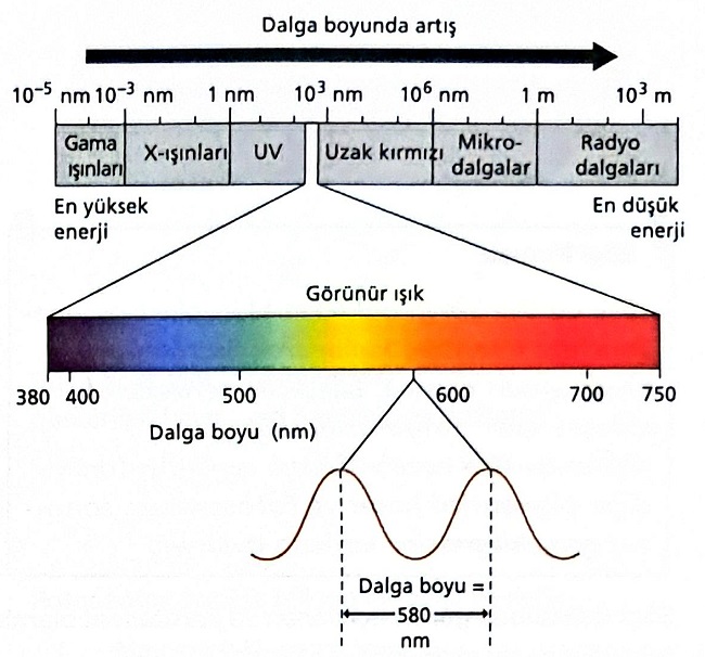 2604Görünür ışık, ışık spektrumundaki hangi değerler arasındadır. Açıklayınız.