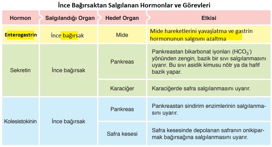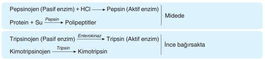 ► Peptonlar oniki parmak bağırsağına ulaştığında pankreastan tripsinojen ve kimotripsinojen enzimleri salınır. Aynı zamanda oniki parmak bağırsağından enterokinaz enzimi salınır.