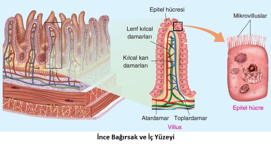 ► İnce bağırsakta monomer maddeler, vitaminler, mineraller, su ve iyonların emilimi olur.