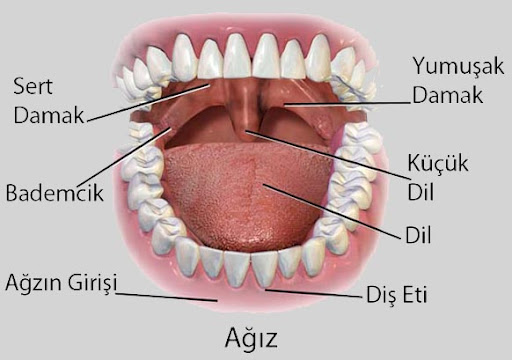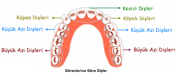 ► Yetişkin bir insanın ağzında 32 diş vardır. Bunlardan 8 tanesi kesici diş, 4 tanesi köpek diş, 8 tanesi küçük azı, 12 tanesi de büyük azı dişleridir.