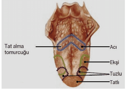 ► Yüzeyinde papilla adı verilen çıkıntılar bulunur. Bu çıkıntıların içinde ya da aralarında tat tomurcukları dağılmıştır.