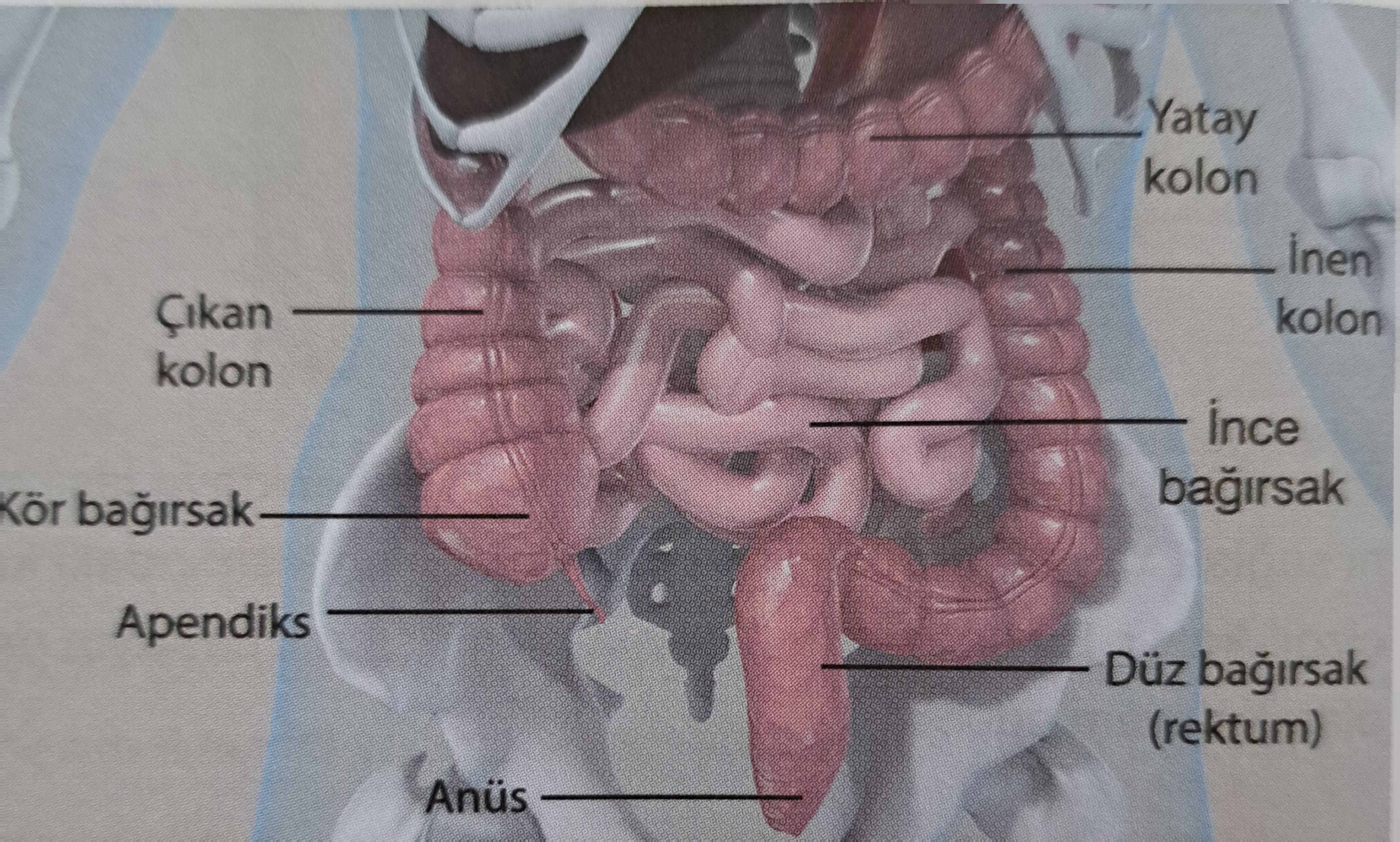► Kalın bağırsakta ise; su, kısa zincirli yağ asitleri, iyonlar, bağırsak bakterilerinin ürettiği B ve K vitaminlerinin emilimi olur.