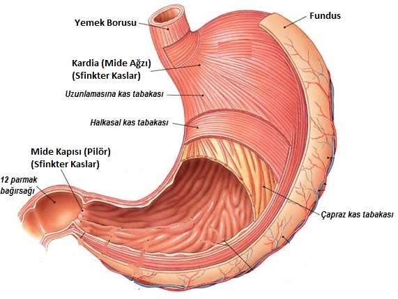 ► Yemek borusunun alt ucunda bulunan sfinkter kasın gevşemesi ile besin mide ağzından (kardia) mideye girer.
