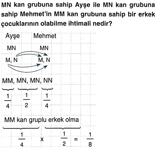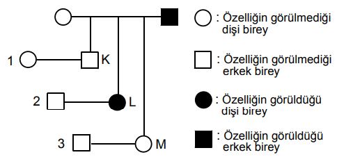 K, L, M bireylerinin 1, 2, 3 numarayla gösterilen bireylerle yapacakları evliliklerinden olacak çocuklarda, bu özellikle ilgili,