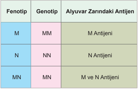 ► İnsanların alyuvar zarında M ve N antijenleri bulunur. Ancak bu antijenlere karşı antikor oluşmaz. Bu nedenle kan nakillerinde önemli bir sorun yaratmaz.
