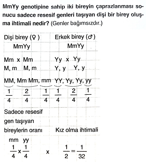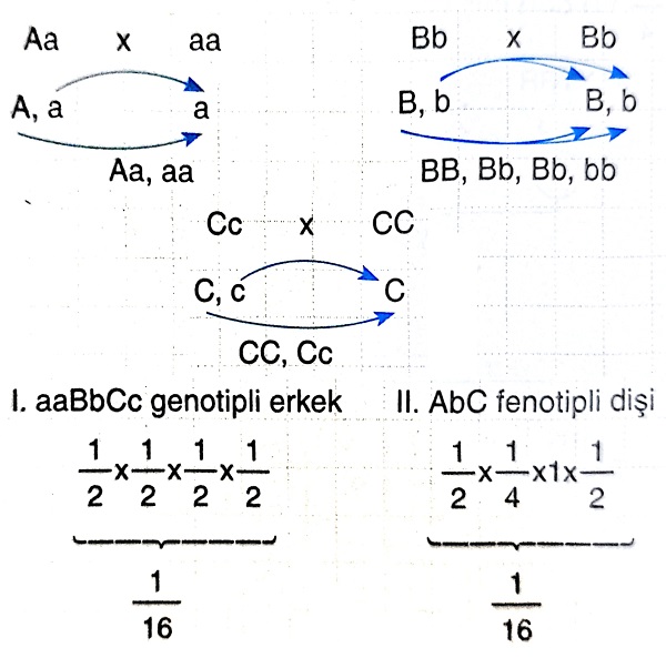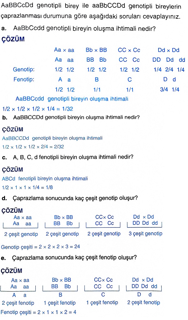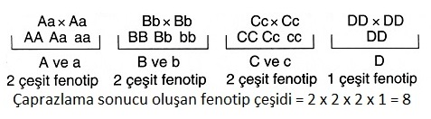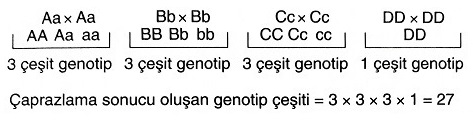 b. Tüm karakterlerin çaprazlanmasından elde edilen fenotip çeşidi sayıları çarpılarak sonuç elde edilir.