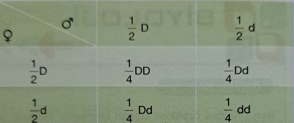 ► F1'in oluşturduğu gametler satır ve sütunlara yerleştirilir. Satır ve sütunların kesiştiği kutulara ise yavruların oluşabilecek genotipleri yazılır.